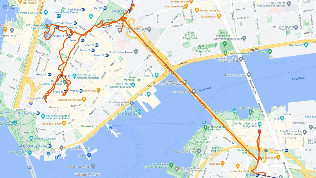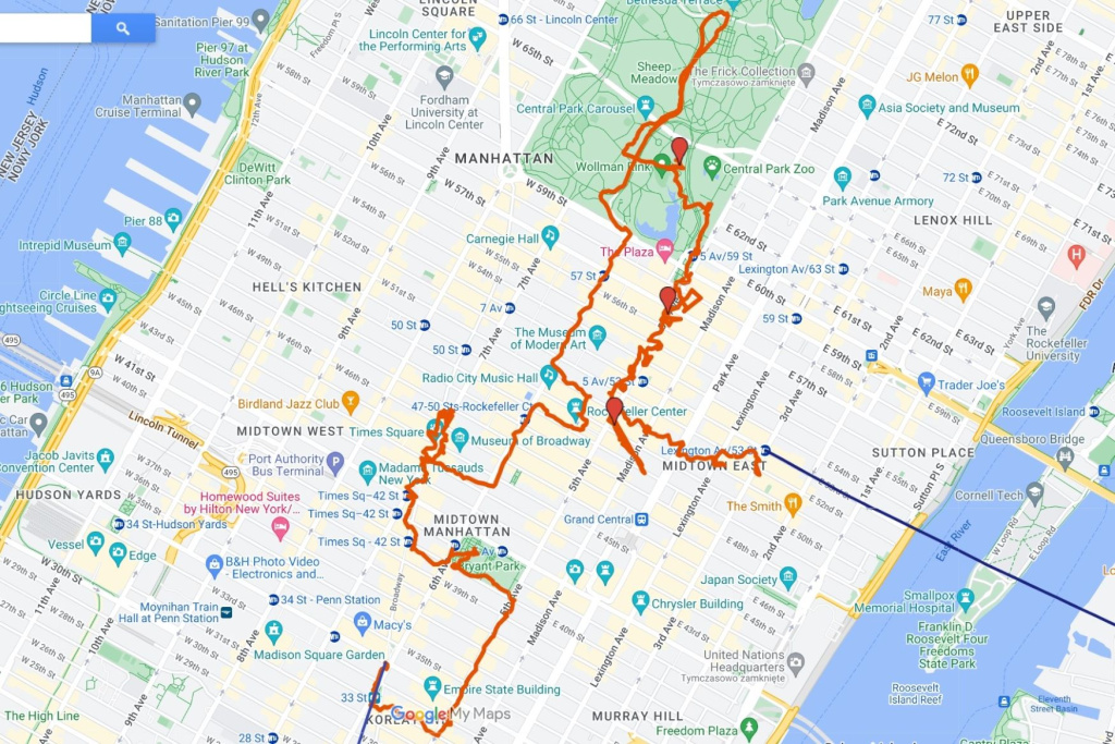 Zapis GPS trasy zwiedzania Nowego Jorku