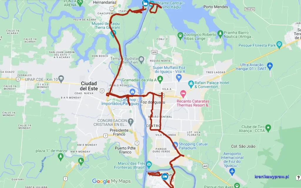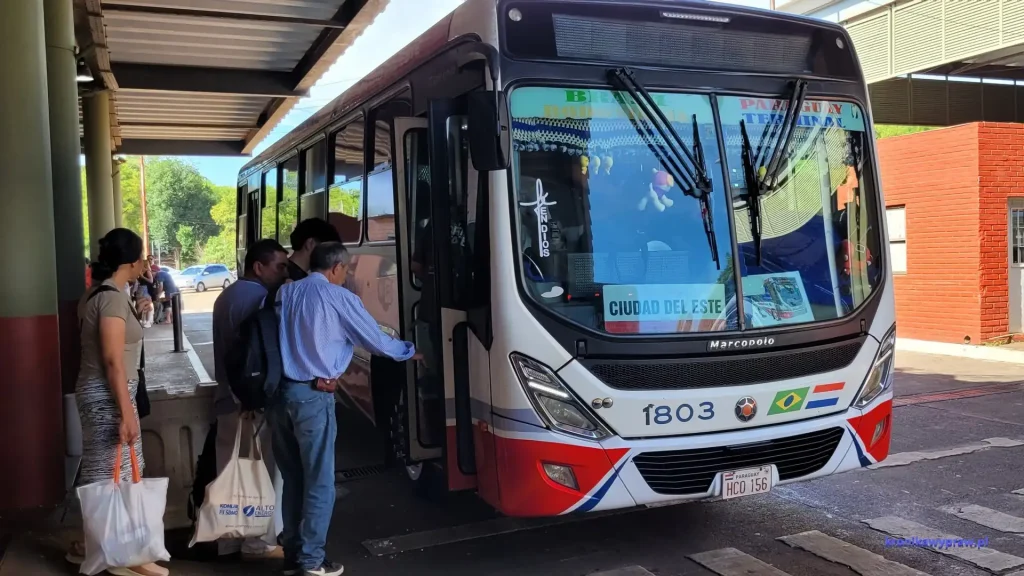 Kolejnego dnia wybrałem się do Paragwaju. Podróż nie była skomplikowana, gdyż na dworcu autobusowym w Puerto Iguazu wsiadłem w autobus który zawiózł mnie do Ciudad del Este – miasta w Paragwaju przy granicy z Brazylią. Wymaga to przekroczenia dwóch granic, ale podobnie jak w przypadku wyjazdu na wodospady Iguazu w Brazylii kontrola paszportów była tylko w Argentynie. Na kontroli paszportowej ani w Brazylii ani w Paragwaju autobus nawet się nie zatrzymywał.