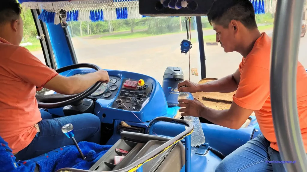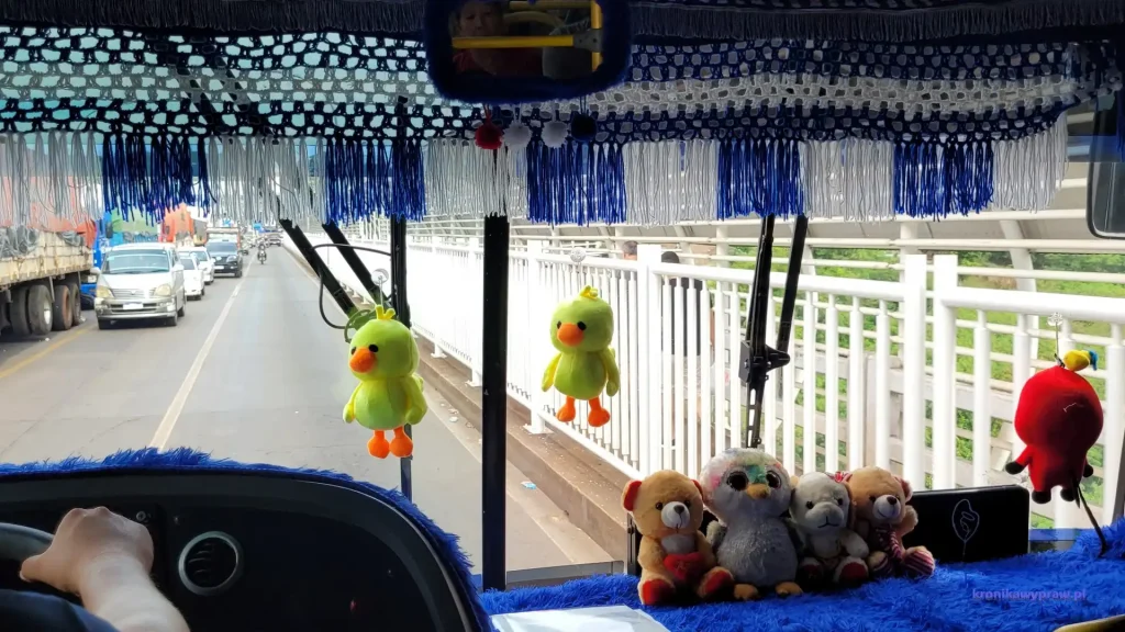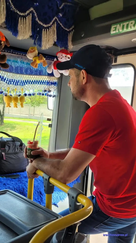 Podróż autobusem sama w sobie była atrakcją. Kierowcy paragwajscy to miłośnicy firanek i pluszaków – przez przednią szybę autobusu chyba niewiele było widać. No i są to miłośnicy yerba mate – przez całą drogę, co chwila pomocnik podawał mu świeżo zalewany napój (w naczyniu z butelki plastikowej – bezpieczna, nie pokaleczy kierowcy w przypadku rozbicia się?)